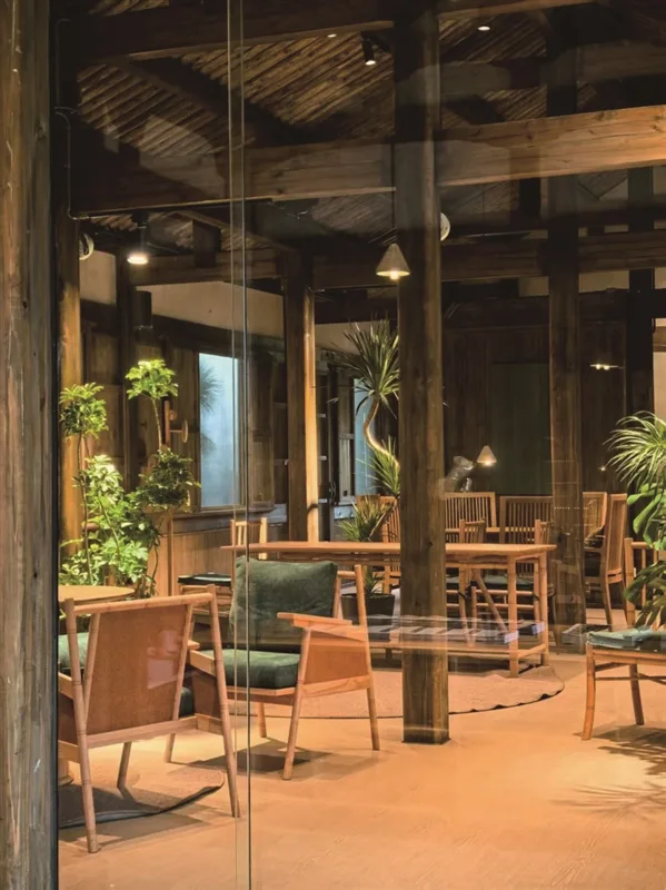 如今,走进老宅,暖黄的灯光与葱茏的绿植柔和地点缀于空间之中,与古朴的柱廊、花格窗相映成趣。点一杯咖啡,与古建开启一场无声的对话——历史未曾远离,只是换了一种方式,温柔地落入了当下。历史建筑的厚重感和现代生活的松弛感,在这里毫不违和地交融在一起。