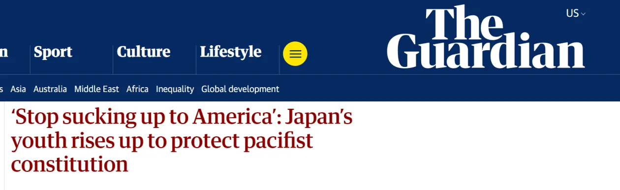日本年轻群体正成为本轮抗议的核心力量。据英国《卫报》报道,出生于二战结束约半个世纪后的年轻人们,正涌上街头捍卫和平宪法,用光剑、荧光棒、应援扇和流行音乐等当代表达方式进行抗议。不少年轻人表示,过去总是将政治视为“他人的事务”,但当前局势让他们意识到自身未来与宪法密切相关,“宪法也是年轻人需要捍卫的东西”,“希望国家维护和平”。28岁的程序员日置由里(Yuri Hioki)认为,和平宪法使日本能够避免卷入由美国主导的战争,“这点一旦改变令人愤怒”。