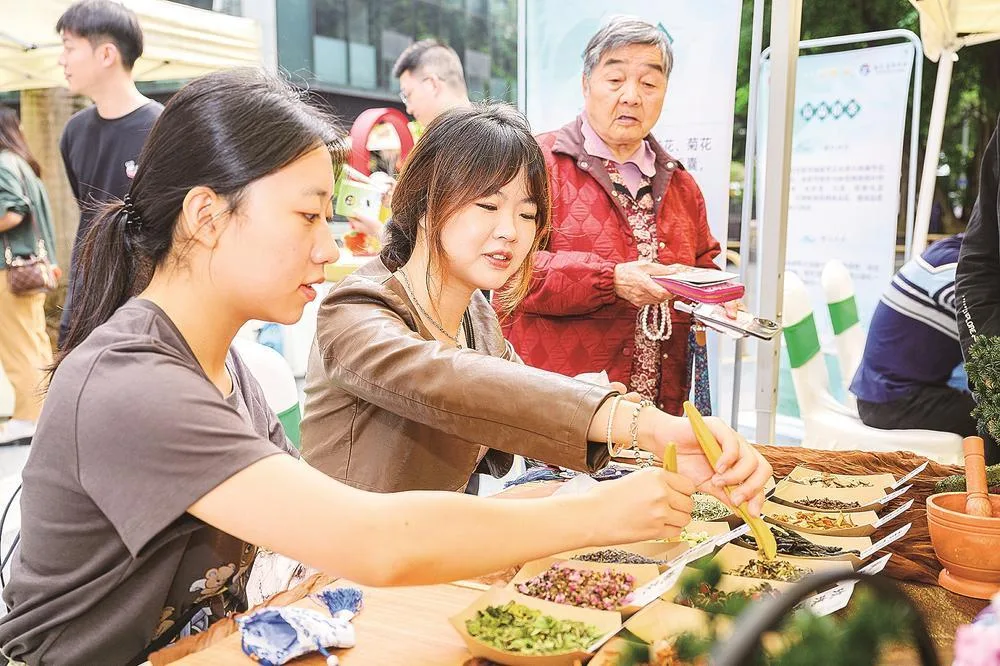 活动现场,市民在茶香氤氲中体验制作香包。陈天博 摄