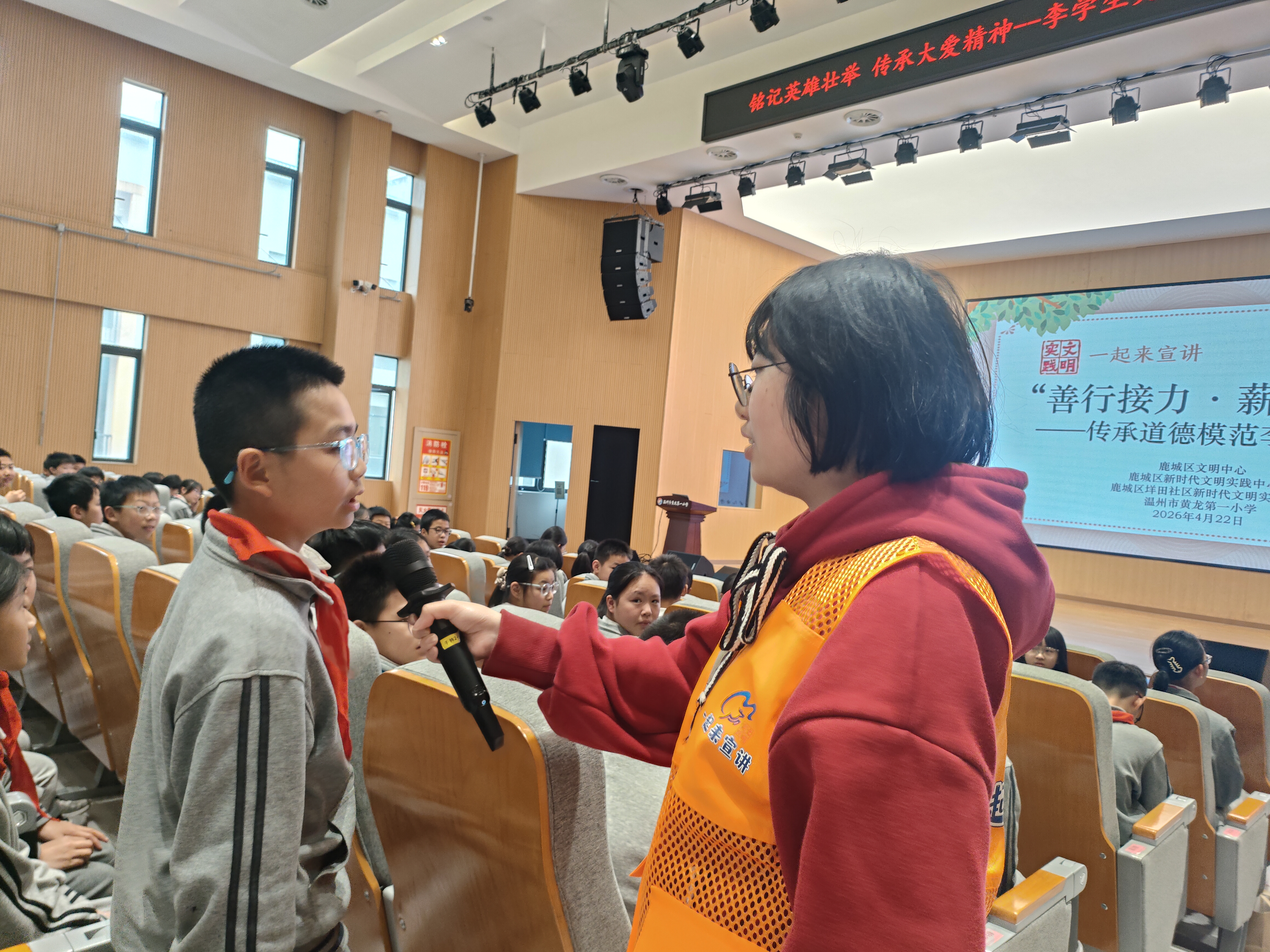 “依托新时代文明实践阵地,以‘一起来宣讲’为主品牌,把身边榜样的力量融入基层理论宣讲,让未成年人在真实故事中感悟凡人善举,让向上向善的种子在青少年心中生根发芽,是我们开展文明实践工作的重要举措。”鹿城区文明中心相关负责人表示。