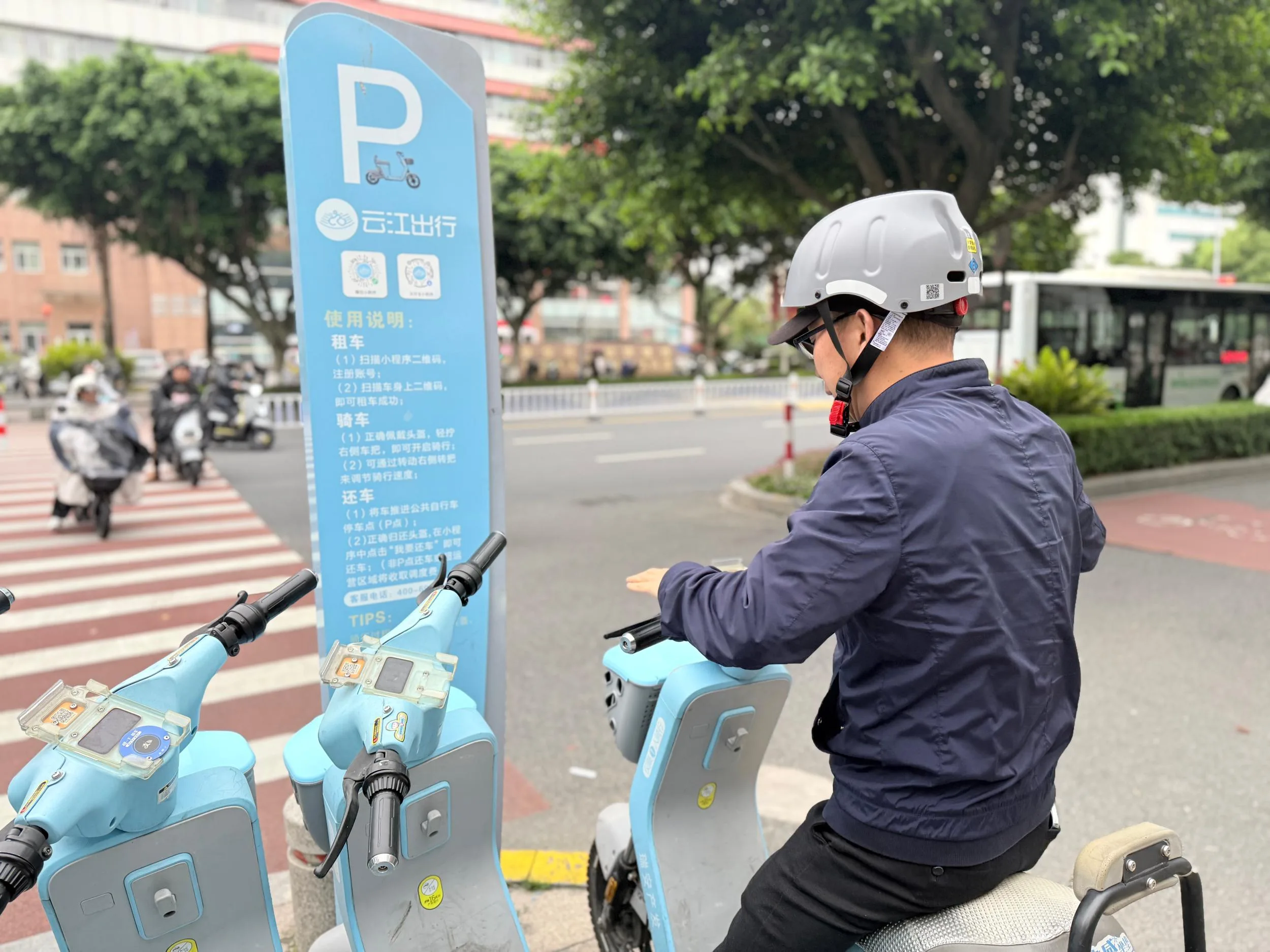 “我觉得新款头盔绑带包硅胶和新增头围调节扣的设计很好。以前骑行时头盔有些晃,新款头盔可以调节到合适大小,并且硅胶绑带也比尼龙绑带更舒适、更卫生。”市民蔡先生扫了一辆已经更新的云江出行共享电动自行车后告诉记者。