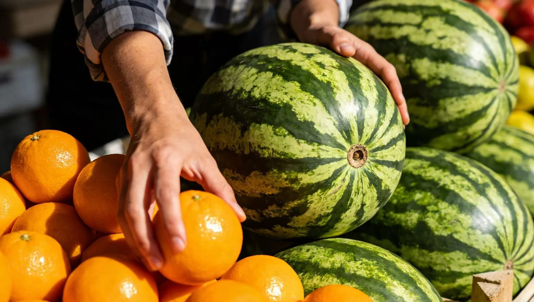 水果类:贵在“色香味”。新鲜水果往往散发着其特有的果香。比如,挑西瓜要看纹路是否清晰、底部的“肚脐”是否小而圆;挑橙子要选手感沉甸、表皮细腻且有弹性的。有时候,顺应时令,选择当季自然成熟的水果,才是“新鲜”的最高境界。