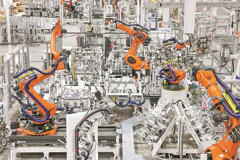 王旺旺 摄近日,在位于闽侯县的福州荻原泰山友模具冲压有限公司生产车间里,机器人正在赶制汽车车身钣金件产品。近年来,闽侯县加速推动汽车制造企业进行“智改数转”,推动产业集群提质扩容。去年,闽侯青口汽车工业园区工业产值突破1000亿元。