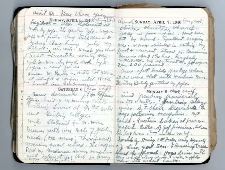 “星期六3月9日——我接到正式命令,前往上海、南京、北平及中国战区其他地点,开展战犯调查与证据收集工作。”