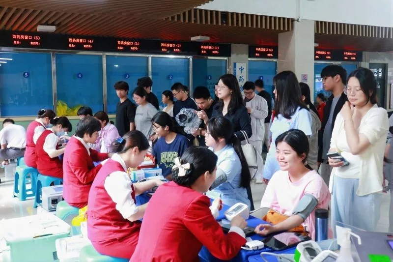 “这是我第一次献血,作为医学生,从课堂上的临床用血知识,到亲身参与献血,我真切感受到每一滴热血对生命的意义,也更明白青年医者的担当。”护理学院2024级护理专业学子黄妙锦,身着护士服匆匆从教室赶来参与活动,她的话语道出了许多参与学子的心声。