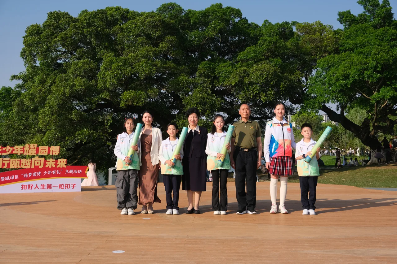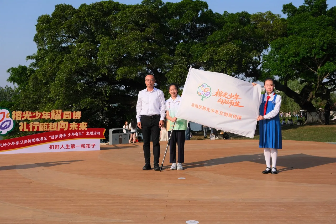 当天,在2026年温州市新时代好少年学习宣传暨瓯海区“逐梦园博 少年有礼”主题活动现场,瓯海区“榕光少年”文明宣传团正式成立。经过层层选拔与严格评审,104名来自温州市各所小学的学生脱颖而出,成为温州园博园首批文明宣传员。未来,他们将陆续走上园博园各宣讲岗位,以文明宣讲的方式迎接八方来客。