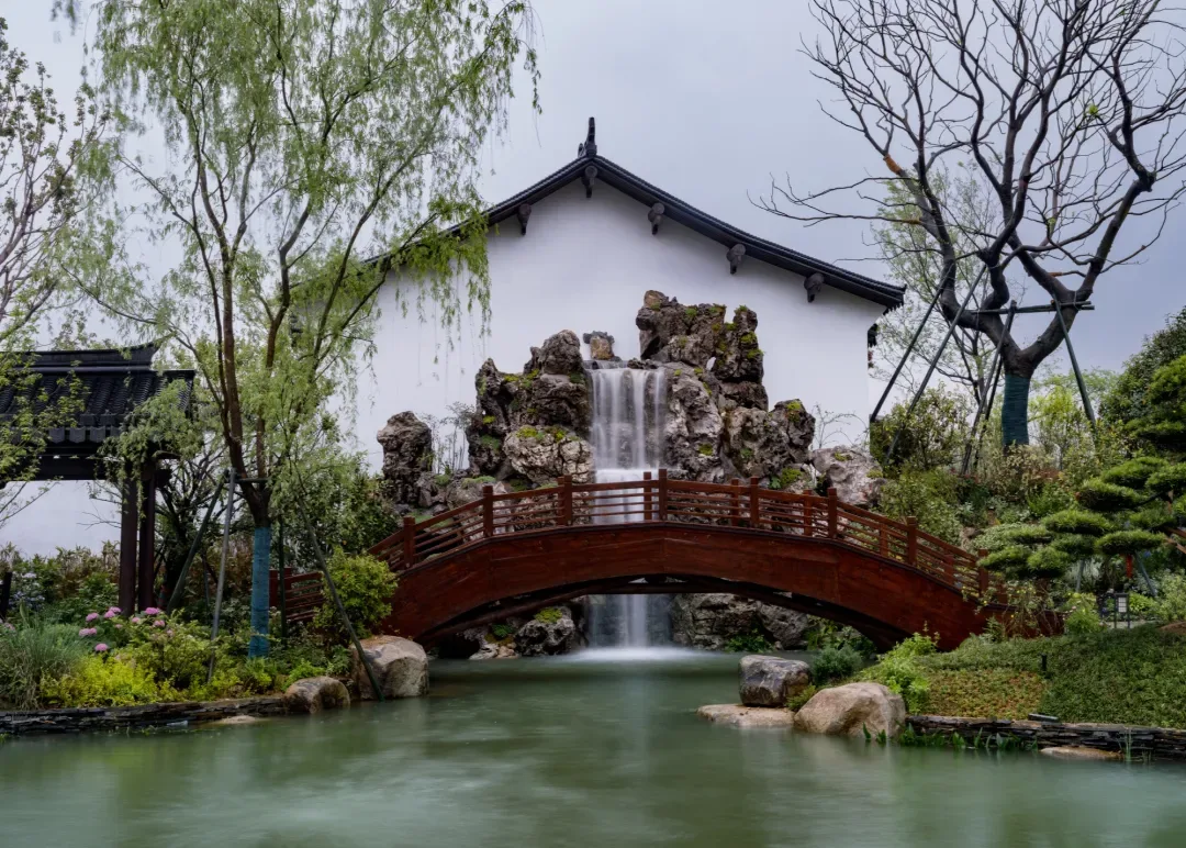 沿着瓯海大道一路驶向繁盛路,从温州园博园北园主入口进园,不到5分钟脚程,就能踏上同舟桥。桥的名字取自孟浩然诗句“借问同舟客,何时到永嘉”,呼应温州古称永嘉。桥那头,便是瓯越园。