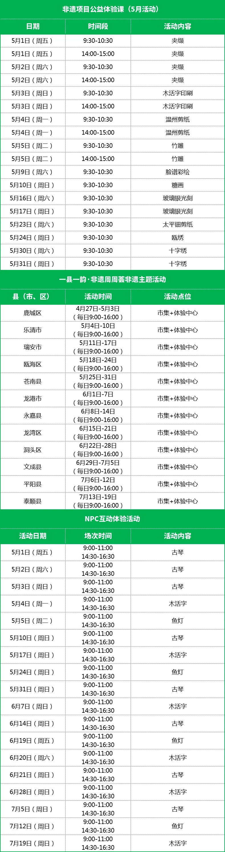 4月至7月园博会期间,瓯越园将开展非遗NPC现场互动,常态化非遗体验,带领游客感受木活字印刷、古琴演奏等非遗魅力;同时持续推出“来园博看南戏”常态化戏曲演出,定期开展沉浸式戏曲表演。每个周末的非遗项目公益体验课,免费开展细纹刻纸、瓯绣、石雕、蓝夹缬等体验。堂前的非遗市集,则实行“一周一县”模式,由各县(市、区)周末轮流承办,突出县域特色。