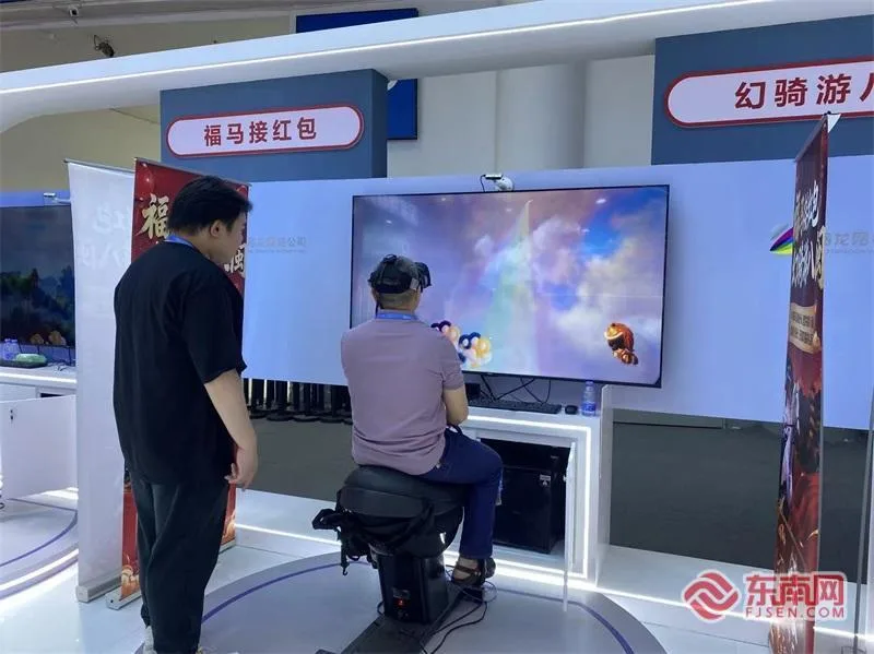 现场“福马接红包 幻骑游八闽”VR沉浸式体验项目吸引了不少观众。据工作人员介绍,项目融合高精度无人机扫描3D建模、虚幻引擎、空间定位感官反馈及数字人等前沿技术,体验者佩戴高清VR设备跨上智能马鞍即可“骑马”幻游福建,纵览八闽名胜,并在途中进行趣味接红包。“几分钟就逛遍了福建好风光,画面很逼真,有身临其境的感觉。”刚摘下VR设备的李先生兴奋地分享感受。
