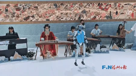 在数字福建展区,机器人的钢琴古筝合奏结合炫酷的机器人热舞引得一众叫好。图源:福州日报