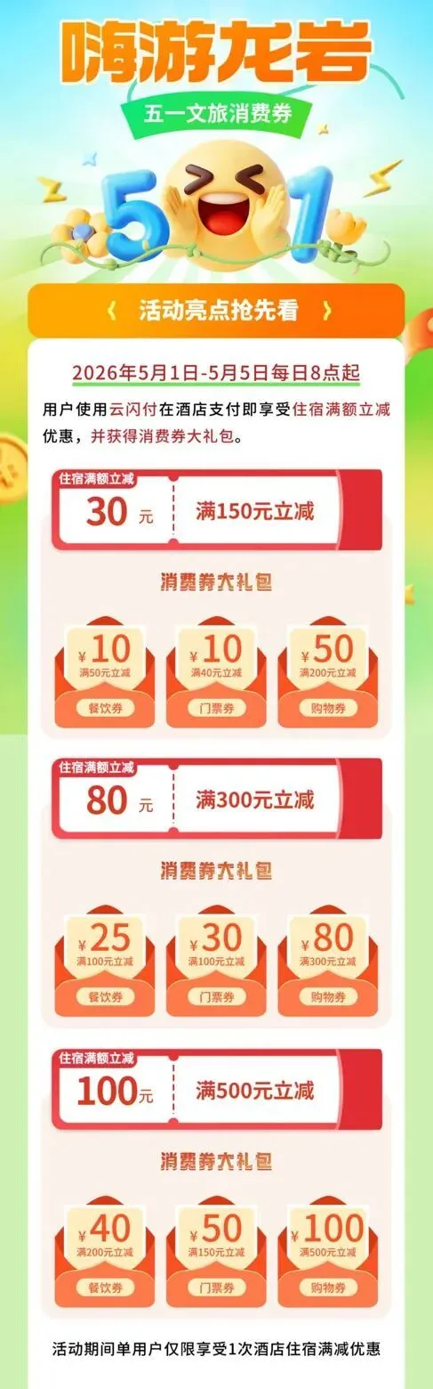 2026年“嗨游龙岩”五一龙岩(新罗)消费券也重磅上线!