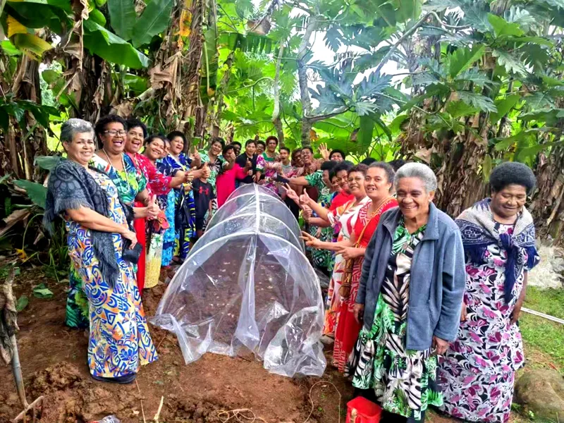 指导斐济首都苏瓦市郊缺地的妇女组织林下覆土栽培菌草菇