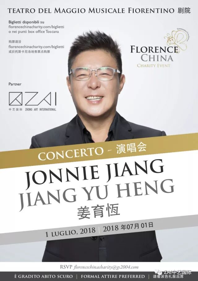 2018姜育恒佛罗伦萨慈善音乐会将于7月1日在MAGGIO大剧院举办,中艺国际作为慈善音乐会指定官方合作伙伴。中艺国际,坐落于意大利文艺复兴之都佛罗伦萨科比尼宫,是一所活跃在中意两国之间的文化艺术交流机构,多年以来一直致力于组织中意两国高水平、高质量的艺术展览与文化交流活动。