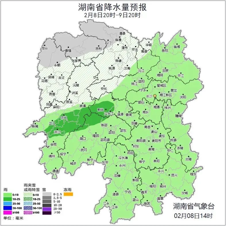 进入2月以来,湖南主打阴雨路线。然而,雨水似乎并没打算离去,2月8日,中央气象台预计,伴随着高原槽东移,又会有一次较大范围雨雪天气登场,南方多地可能出现雨转雪再转雨的情况。