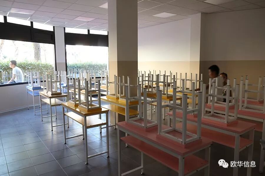 新校址坐落于普拉托市San Paolo社区,在Borgonuovo小学对面。周围环境优越,公园、面包店、冰激淋店、药店等服务设施一应俱全。新学校经过一个多月的全面装修,各种设施都极为完备。专门设有幼儿园小厕所、厨房、食堂。各教室都将采用多媒体教学。所有课桌椅、家具均是全新从中国定制,环保无味。