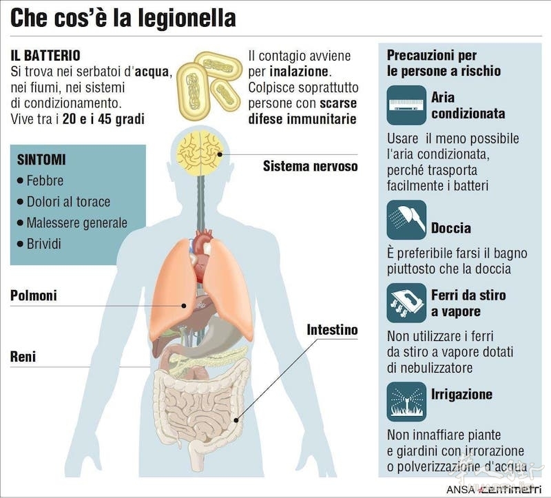 近日Milano卫生部门发现各大医院接治了多名因军团菌感染的病例,在发现军团菌感染病例的3天里已经有3人因感染后导致并发症死亡。