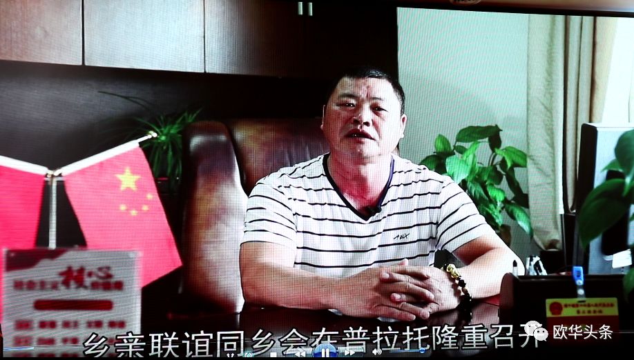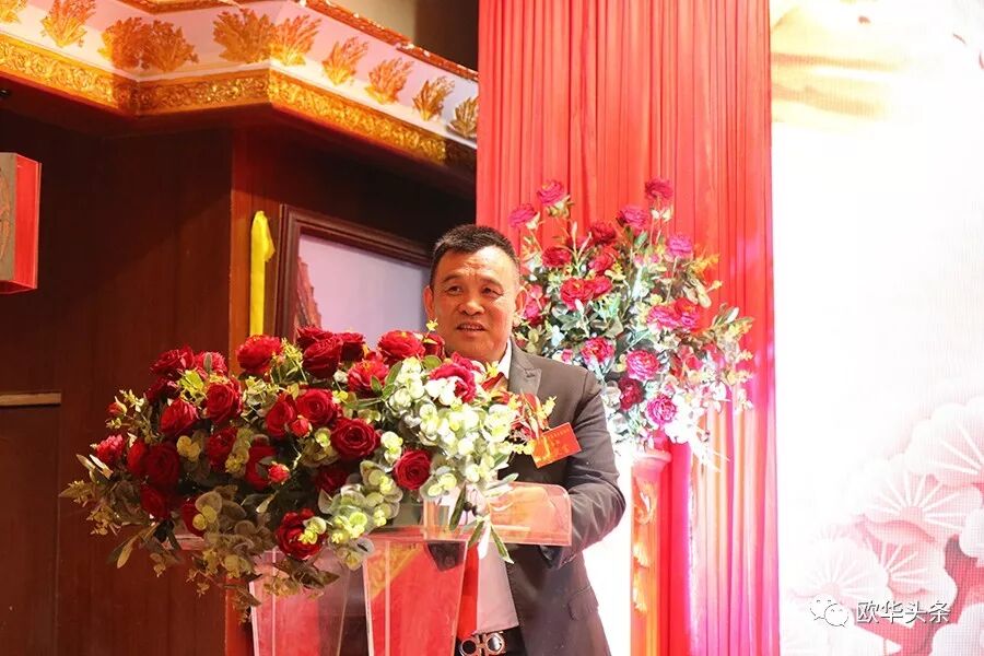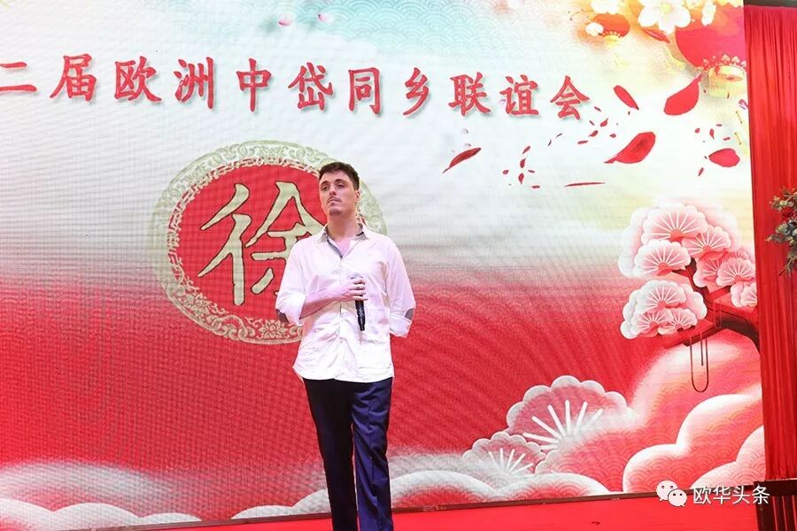 接下来上台的同乡代表包括第二届欧洲中岱同乡会代表徐定富、中北村村长徐道清、中南村老人协会代表徐象飞、中北村老人协会代表徐利华、法国第一届中岱同乡会代表徐象新,并播放了瑞安市罗凤办事处书记陈丰和中南村村长徐尧弟的讲话视频,且由徐建光宣读了瑞安市塘下镇罗凤办事处归侨归眷联合会的贺信。代表们向同乡会的顺利举行表示祝贺,并对旅欧中岱的父老乡亲们表达了真挚的祝福。