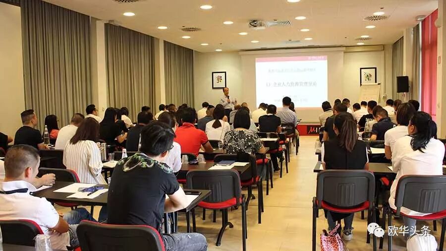 意大利《华人街》讯(记者一策):2018年9月1日,第十三期欧洲华商商学院普拉托高级研修班在当地Miro’ 大酒店(Via degli Olmi, 7, Calenzano)如期举行,中国人民大学劳动人事学院院长杨伟国教授亲临现场授课,授课内容为“企业人力资源管理”,据悉此次授课时间为9月1日和2日两天时间。在工作节奏及知识更新越来越快的今天,无论何人要胜任职责并有所创新,必须随时读书充电,当天有近百名学员利用节假日休息时间前来听课。