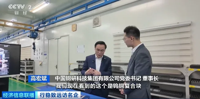 中国钢研科技集团有限公司党委书记 董事长 高宏斌:大家认为中国钢研就是搞钢铁的,实际上中国钢研涉及的材料领域远不止钢铁,比如航空发动机用的高温合金、稀土永磁、超硬材料,涉及的材料领域是十几个,一直在行稳致远才有今天。