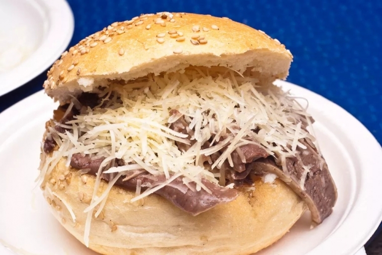 排在第九名的同样是街头美食,巴勒莫牛杂包(pani câ meusa)!牛杂包分为两种,有奶酪的叫maritatu,不放奶酪的被称为schettu。首先选用撒上芝麻的软面包,之后把牛肺和脾煮熟,用猪油炸过后剁碎塞进面包。抹上caciocavallo或ricotta奶酪,就成为了maritatu。如果不放奶酪,只撒一点柠檬,则被称为schettu。