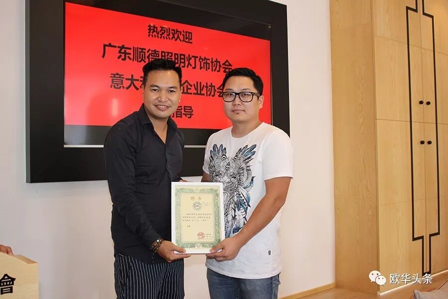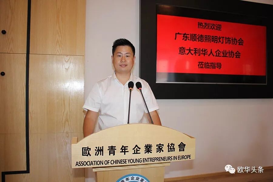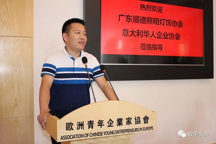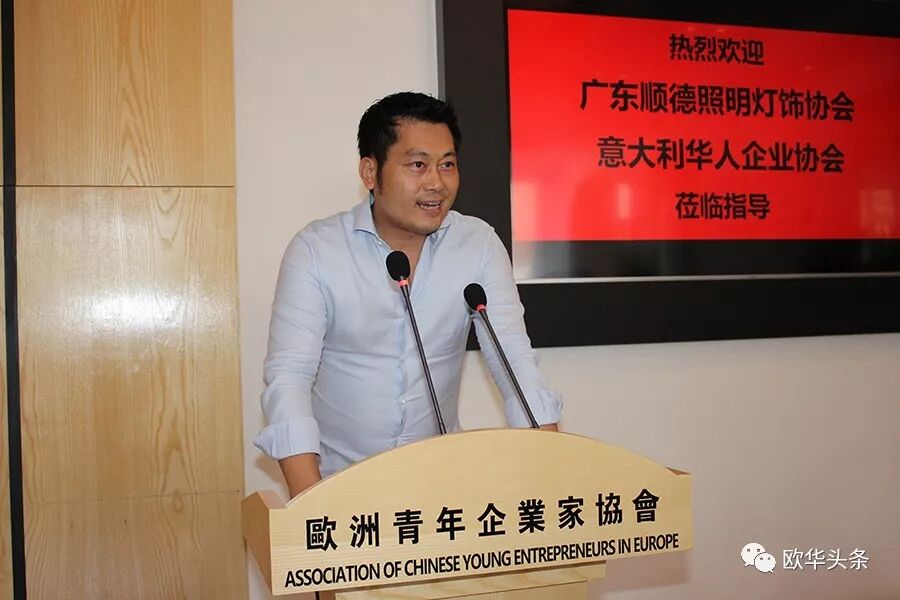 ▲欧洲青年企业家协会首席执行会长蒋一赫对广东顺德照明灯饰协会与意大利华人企业协会的来访表示热烈的欢迎,希望大家在轻松、愉快的气氛中相互交流学习,在互动中拓展新的思路。