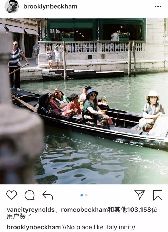布鲁克林正在意大利游玩,拍摄并上传了两张亚洲游客的照片,分别为亚洲游客逛超市,和一船的亚洲游客在河上游览。布鲁克林配文称:“一点都不像意大利了,难道不是吗(No place like Italy innnit.)”