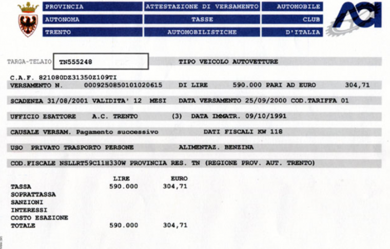 十个中会有八个会回答道汽车税(La tassa automobilistica或者 bollo auto)。无论你是否每年365天恨不得天天开着车通勤还是把爱车放在车库吃了一整年灰,只要你的机动车在意大利注册登记就不得不每年向公共汽车登记处(PRA)支付这笔汽车税。