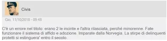 @Civis:新闻报道有误吧?!两个人怀孕被放,另外那个未成年人是直接被释放了吧。意大利的领养系统现在应该要发挥作用了!意大利要向挪威学习,让“受保护的罪犯”在本世纪内消失!