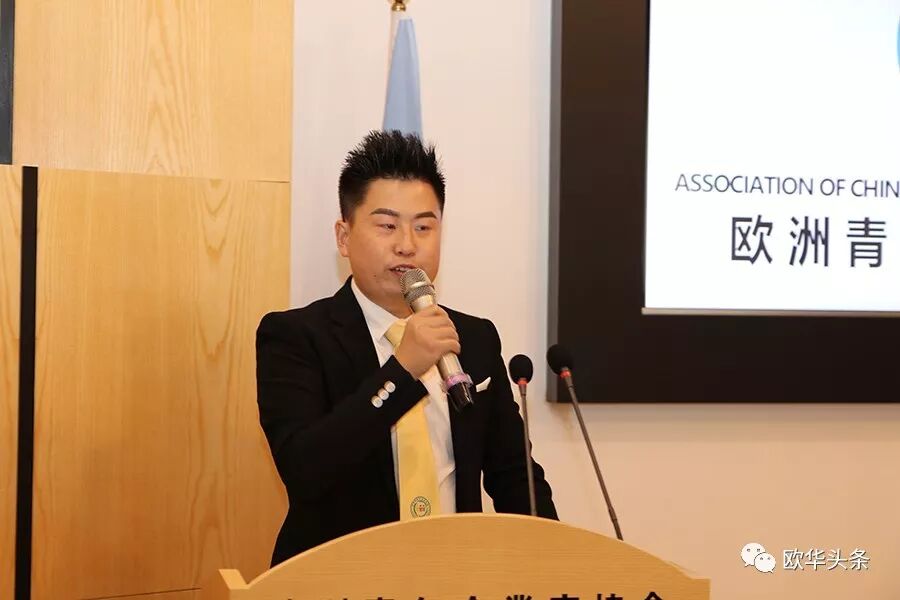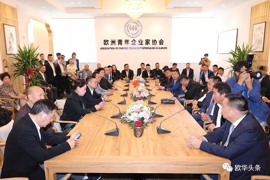 ▲欧洲青年企业家协会会长助理胡炯榜主持座谈会