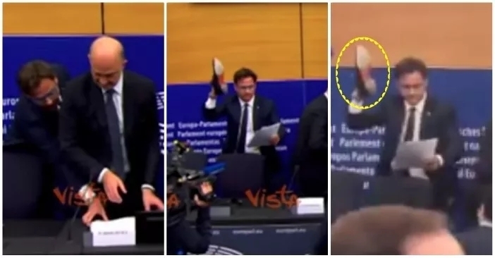 预算法被拒,意大利议员脱鞋砸欧盟文件