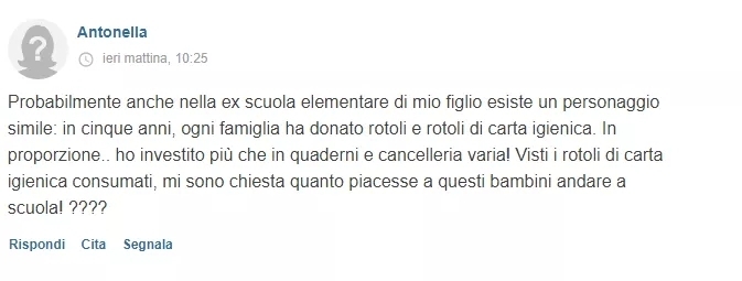 在我儿子以前就读的小学里面也可能有个类似的人。五年时间里,每个家庭都捐赠过一卷又一卷的卫生纸。我还投资过许多笔记本以及其他的各种文具。然而根据它们的使用消耗情况,我就想问下,去上学的小孩到底是有多喜欢用这些????