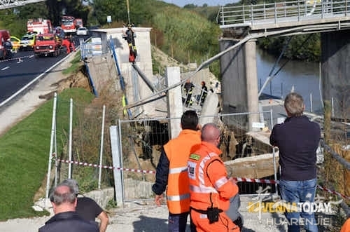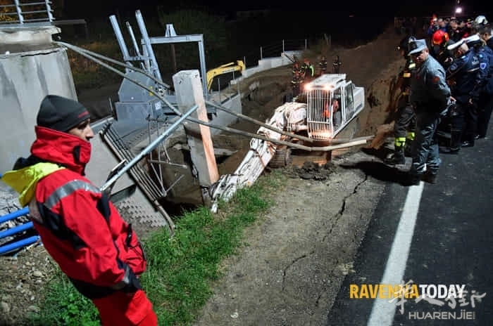简讯报道:10月25日Ravenna(拉文纳)附近的Ronco di San Bartolo河沿岸,沿着Via Ravegnana方向一座河堤的防洪桥梁突然坍塌,导致一名作业的技术员被活埋在废墟中身亡。