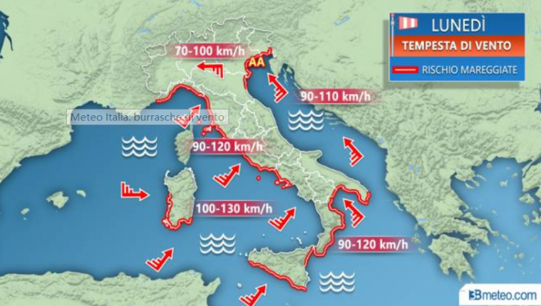 强雷暴天气今天席卷了包括皮埃蒙特大区,伦巴第大区,利古里亚大区,艾米利亚-罗马大区,托斯卡纳大区和西西里岛等在内的几乎整个意大利。大量降雨则集中在高山地区以及北部的阿尔卑斯山麓,和利古里亚大区亚平宁地区中心和西西里和卡拉布里亚区域。同时这种强雷暴天气还伴随着闪电,冰雹和强烈的阵风。