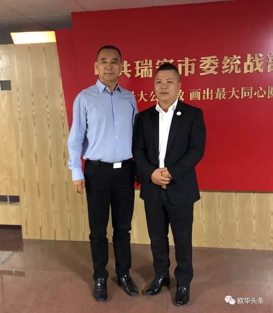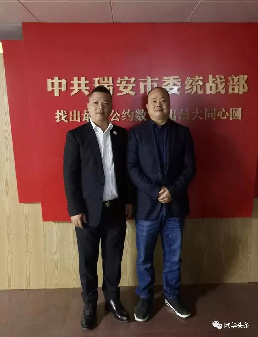 意大利华人服装行业协会会长 与 瑞安市外侨办主任周靖互赠纪念品