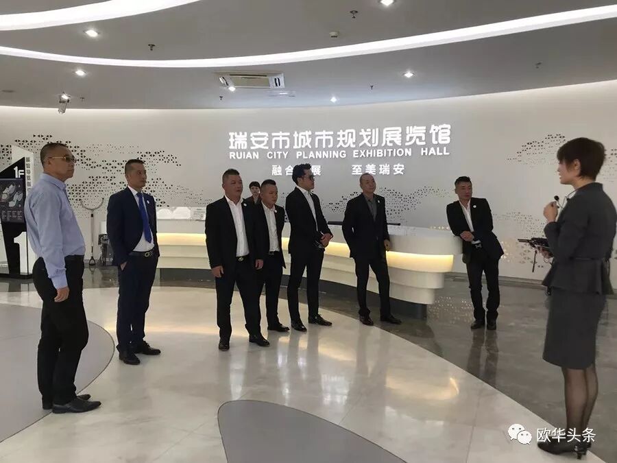 在瑞安市侨办主任周靖、副主任潘李淡以及省侨联副主席、瑞安市侨商协会名誉会长、意大利华人服装行业协会荣誉会长刘光华等的全程陪同下,意大利华人服装行业协会考察团一行参观了瑞安市城市规划展览馆,随后在瑞安市侨办召开座谈会。