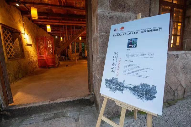 意大利《华人街》据文成新闻网消息:近日,一场关于艺术的盛会在国际慢城玉壶举行,60多位全国知名诗人和画家齐聚“诗画村”五四村西山寨,以“慢旅行•新时尚”为主题,为当地村民奉上了一桌文化大餐。在刚揭牌的国际慢城诗画馆内,一场中意艺术双人展格外引人驻足。