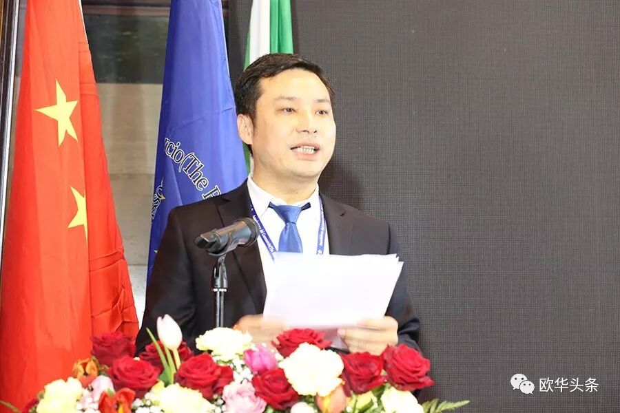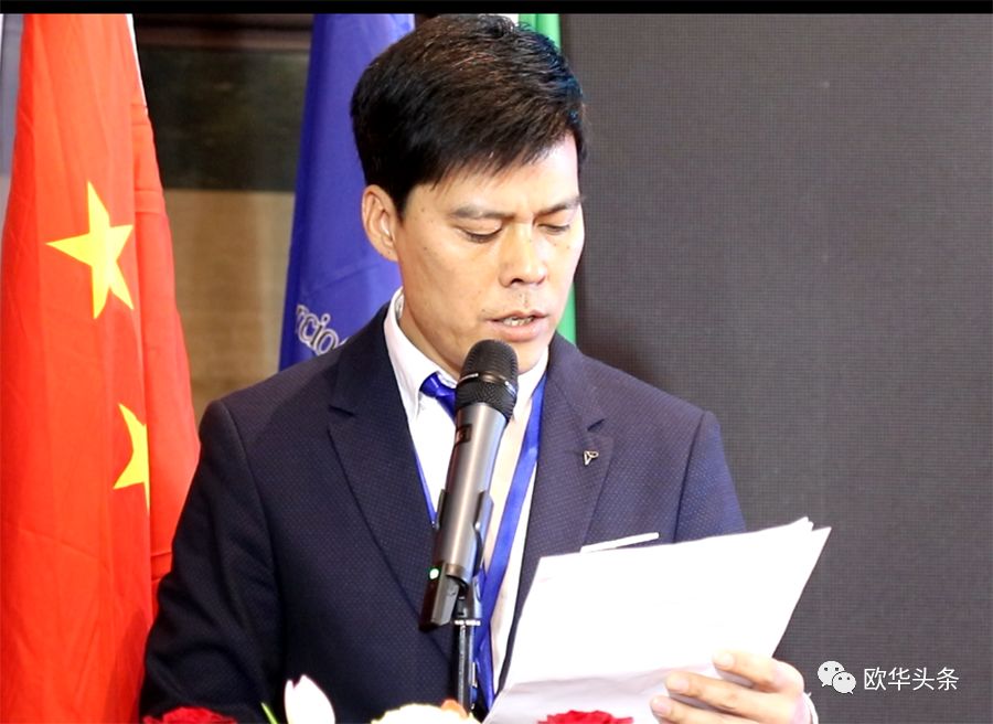 欧洲中国“一带一路”国际商会第一常务副主席詹晓孟宣读本会宗旨