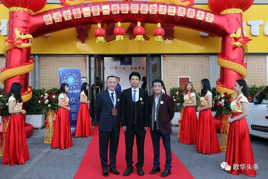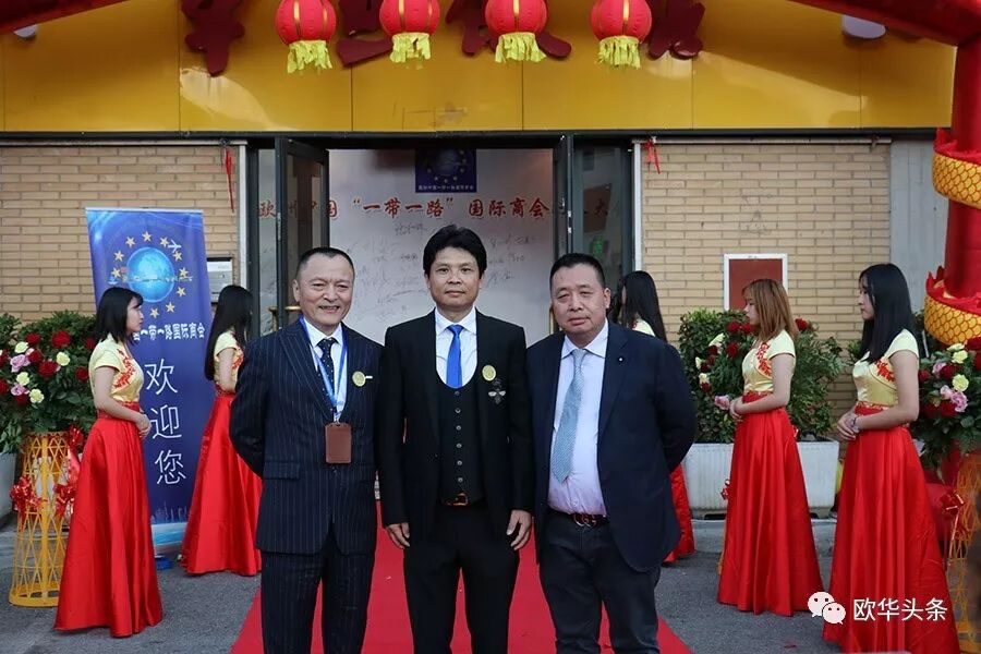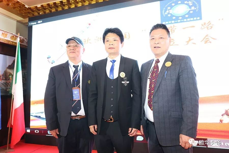(左)欧洲华人社团联合会副秘书长刘亚平 (中)中国驻佛罗伦萨总领馆王辅国总领事 (右)欧洲中国“一带一路”国际商会主席张松伟