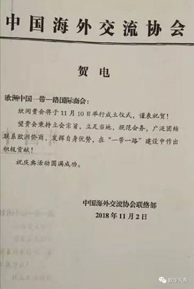 特别邀请于平同志(原中国国际贸易促进委员会副会长)和王松辉先生担任(欧洲中国一带一路国际商会)总顾问 顾问团和会员名单择日公布