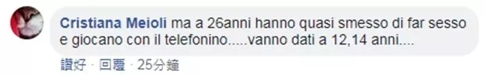 网民Cristiana Meioli:26岁的人基本都在玩手机不过性生活了,应该给那些12岁、14岁的……