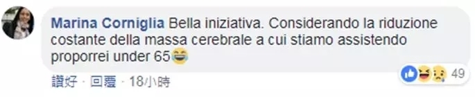 网民Marina Corniglia:很棒的一个措施,考虑到现在的人们越来越没脑子,我建议把年龄限制改为65岁以下。