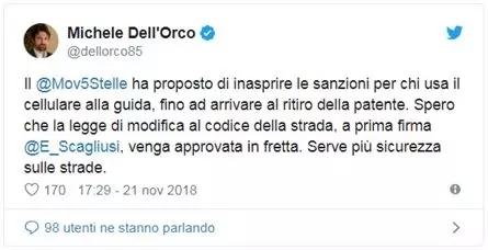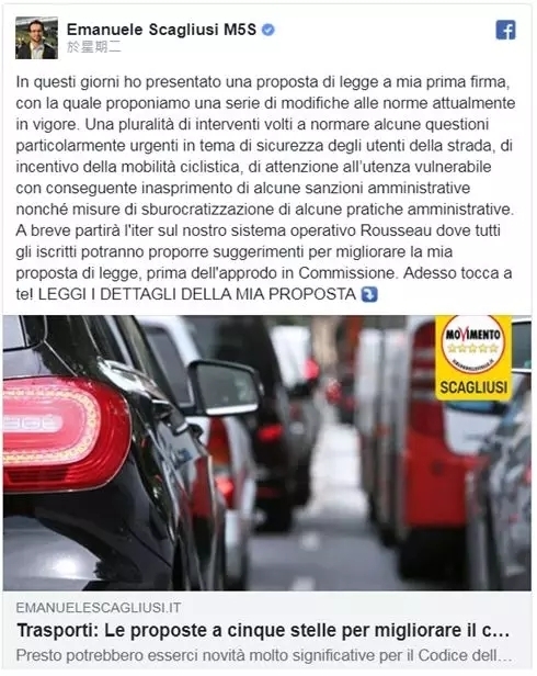 提出该提案的众议院议员Emanuele Scagliusi对此进行了解释:“道路交通事故每年在我们的国家造成3000多人死亡,并造成193亿欧元的损失。2018年前几个月的数据并不比去年好,反而死亡人数有所增加。”