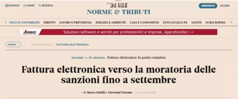 但随后,意大利《24小时太阳报》发文称,电子发票的执行或将被推迟到2019年9月。