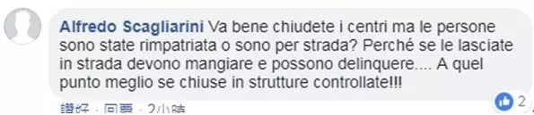 网友Alfredo Scagliarini:可以关闭,但这些人会被遣返还是把他们扔在街上?如果让他们睡大街,而他们需要吃饭,就有可能带来犯罪。这样看还是把他们控制在收容中心好。