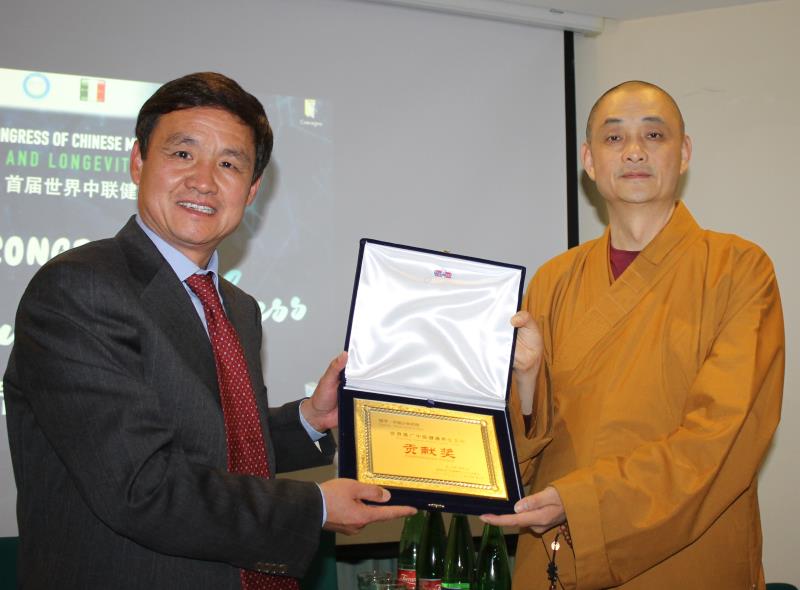 组委会为少林药局授“世界推广中医健康养生文化贡献奖”牌