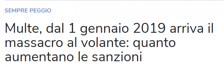 根据意大利汽车行业专家预估,从2019年1月1日起,交通罚款可能会再次增加2.4%。尽管2.4%的数字看上去似乎微不足道,但积少成多还是增加了对家庭开支。