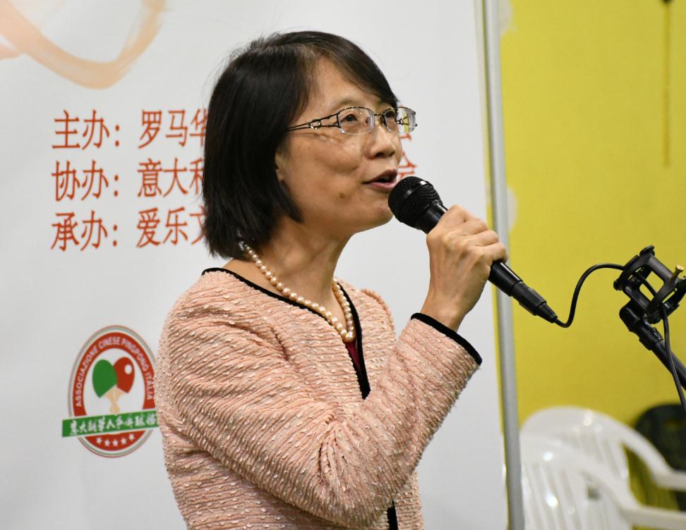 中国驻意大使馆吴冬梅参赞出席了活动并致辞,她强调,乒乓是增强体质和体魄的国球运动,是磨练意志,需要顽强拼搏、突破超越自我和团结合作迎接挑战的精神;中国人喜欢乒乓球如同意大利人喜欢足球一样,乒乓球在中国外交史上曾经发挥过重要的作用,相信在如今乒乓球同样也能发挥重要的作用,增进中意两国的友谊、 加深两国人民的了解。