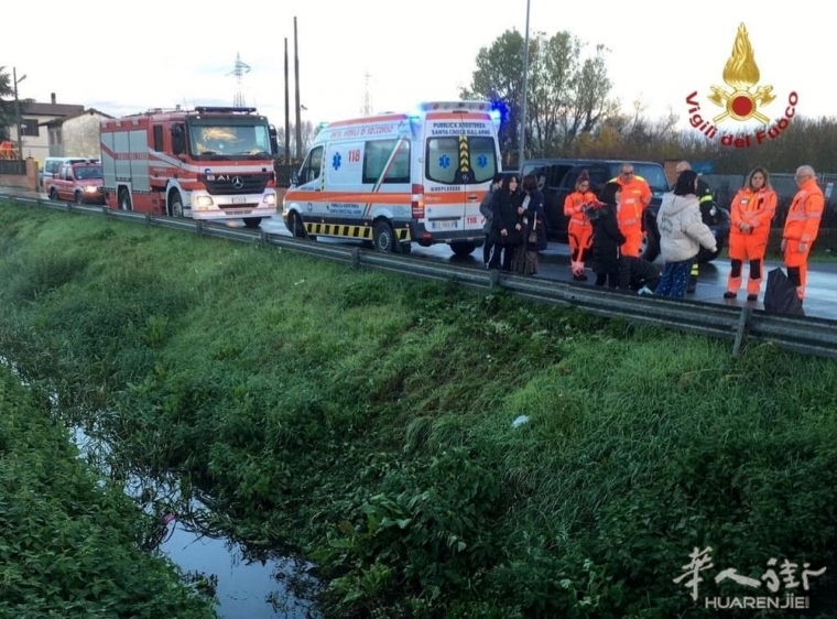 一名40岁华人女子被一辆行驶的车撞到并抛到路边下面的一条沟里死亡,当时她正在送13岁的女儿前去公交车停靠站乘车前往Castelfranco di Sotto上学。事故发生于星期一11月26日上午7点左右在比萨省Santa Croce sull'Arno镇的via di Pelle,且就发生在她女儿的眼前。她被车撞后掉进了路边下面的一条沟里。肇事司机受到惊吓并马上停车报了警。