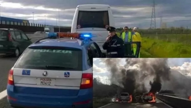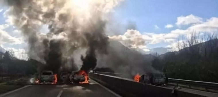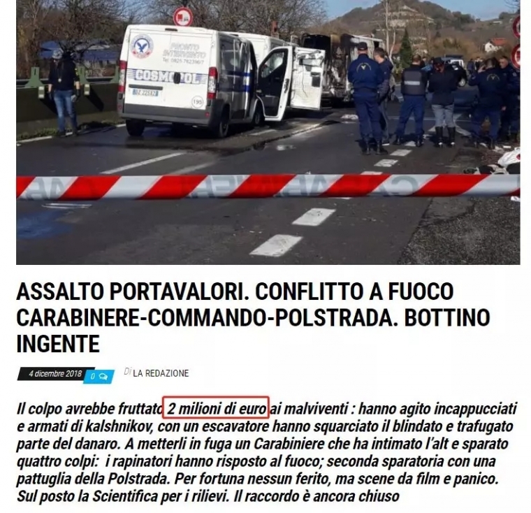 12月4日上午,三辆运钞车在坎帕尼亚大区Avellino-Salerno高速公路上遭到劫匪袭击。为了顺利逃跑,劫匪开枪并点燃了多辆车辆。