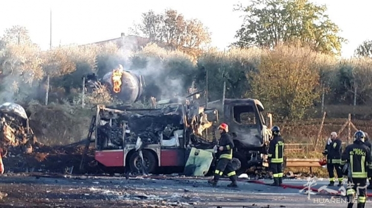 事故导致2人死亡和17人受伤,其中3人重伤都被118救护车送到医院救治,其中一名死者是一名消防员,在Poggio Mirteto消防队工作,以及另一名是运载液化气的油罐车发生爆炸的时候刚好在附近的男子。(alexzou编译)
